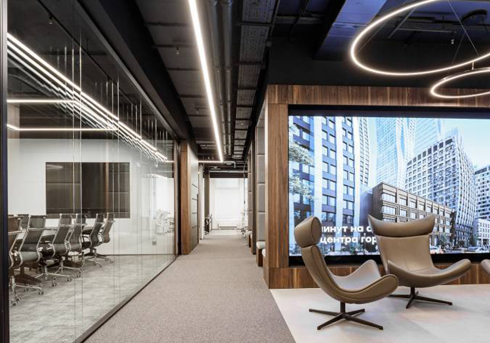Описание проекта: Новый головной офис Level Group, одной из лидирующих компаний столичного рынка девелопмента, начал свою работу в БЦ Wall Street на Валовой улице – он расположился на 4-ом этаже бизнес-центра. Одной из особенностей проекта является высокая доля импортозамещения – 85% всех материалов и оборудования, начиная от фальшполов и заканчивая системами освещения, были произведены в Томске. Оставшиеся 15% пришлись на азиатских (8%) и европейских (7%) производителей.